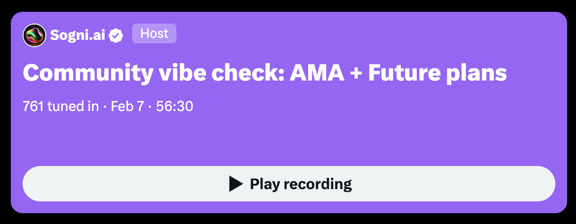 Follow us on our updated X / Twitter handle @Sogni_Protocol to stay updated on upcoming sessions. Be part of the conversation shaping the future of decentralized creativity! 🚀✨